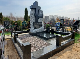 Монтаж вазы не занял у нас много времени. Дождавшись, пока клей высохнет, мы проверили качество работы и сдали заказ клиентке. Заказчица осталась нами довольна, о полностью завершённое место захоронения выглядело следующим образом.
